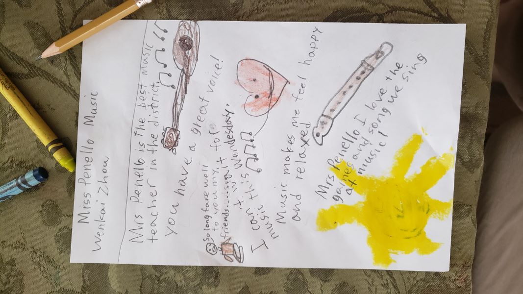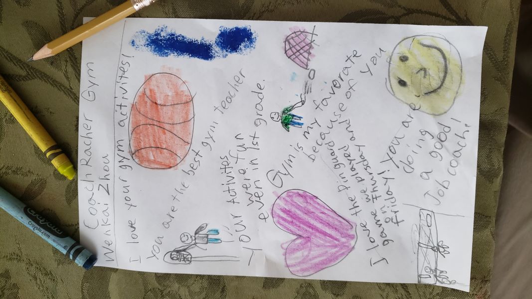 Wenkai wrote these heartfelt notes to his music and gym teachers. (2023)