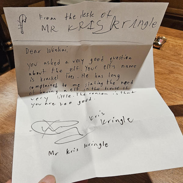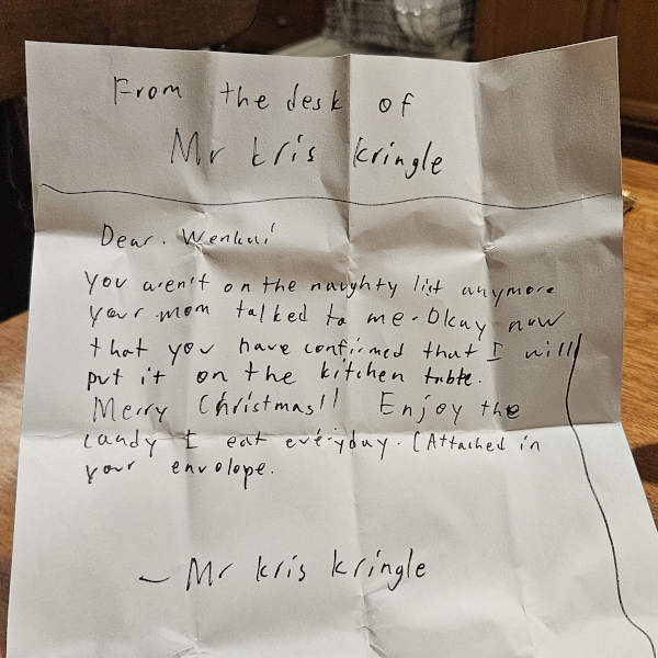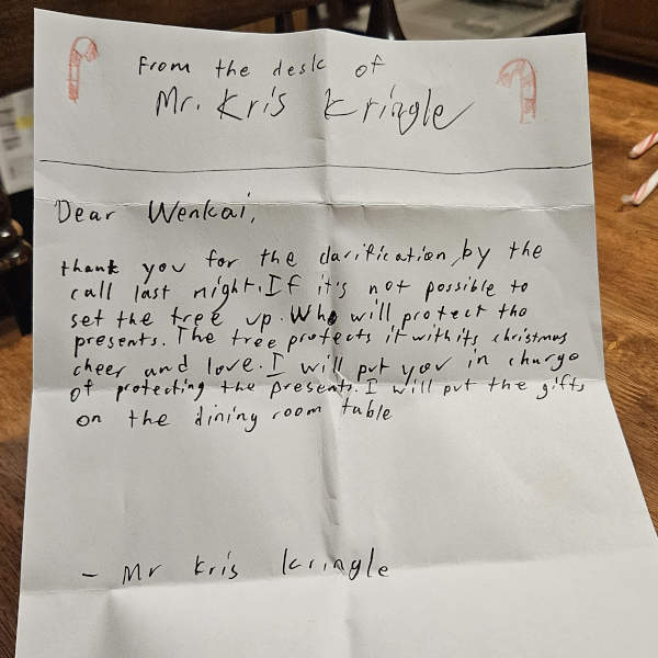 Receiving letters from Santa Claus (Mr. Kris Kringle)